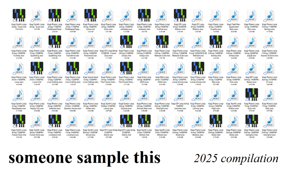 All samples + MIDI of 2025 'someone sample this' files (a total of 52 MIDI/WAV ideas)
